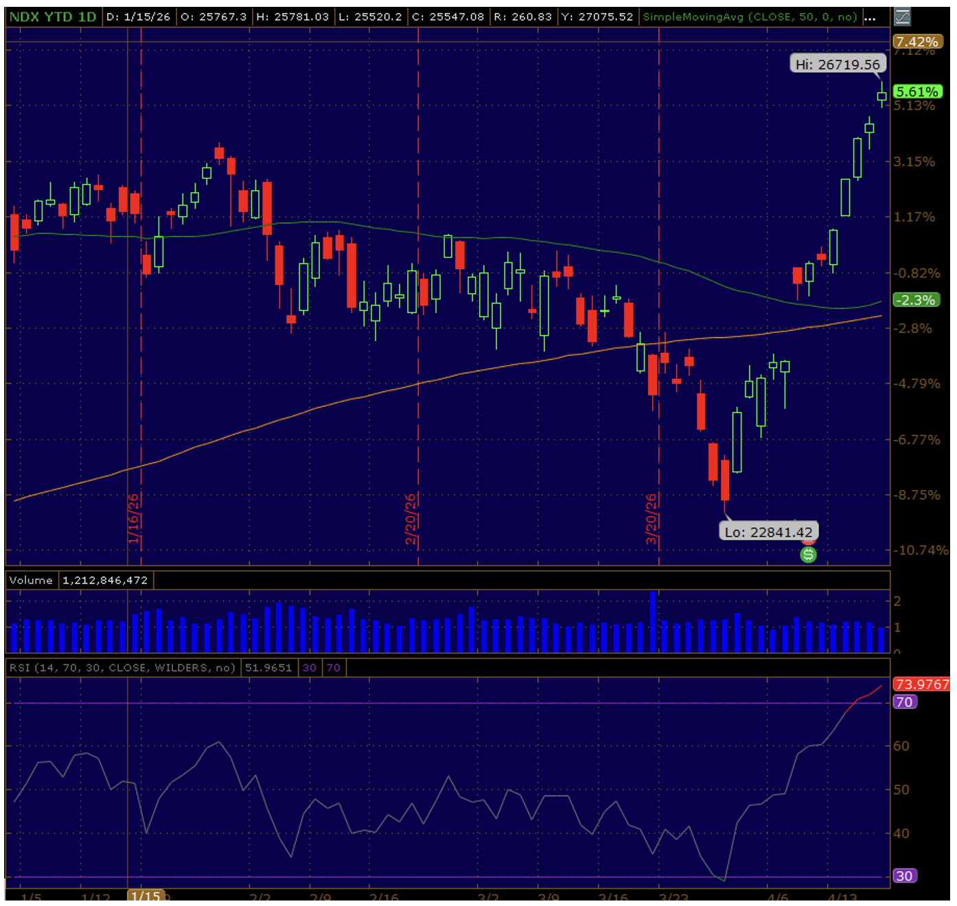 | The market went from trading purely on sentiment, to trading based on the strong underlying fundamentals in just two weeks. Once the Iran conflict uncertainty began to fade, focus returned to strong corporate earnings growth. The retreat in oil prices lessened concern about oil shock inflation, and interest rates have come off their higher recent levels. |